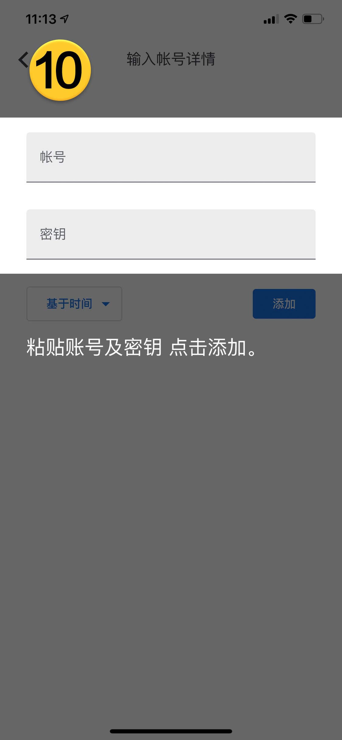 方式二:复制账户名和密钥到谷歌验证器,输入账户名和密钥后选择“√”保存进行谷歌验证器绑定。