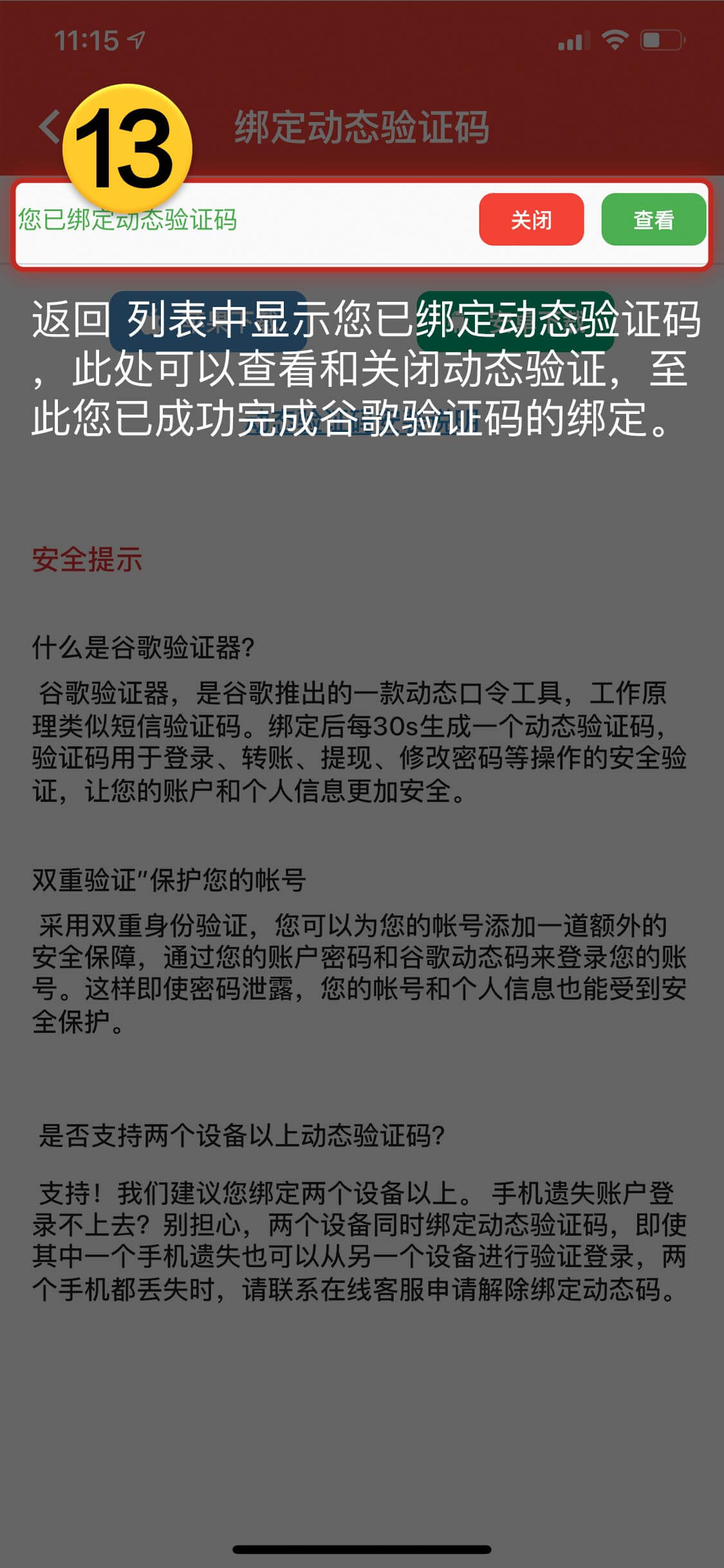2、操作修改登入密码、修改取款密码、发送红包、好友转账和提现 均需要填写谷歌验证器APP中对应的6位 动态验证码 。验证码30秒变化一次,请您注意输入最新验证码。