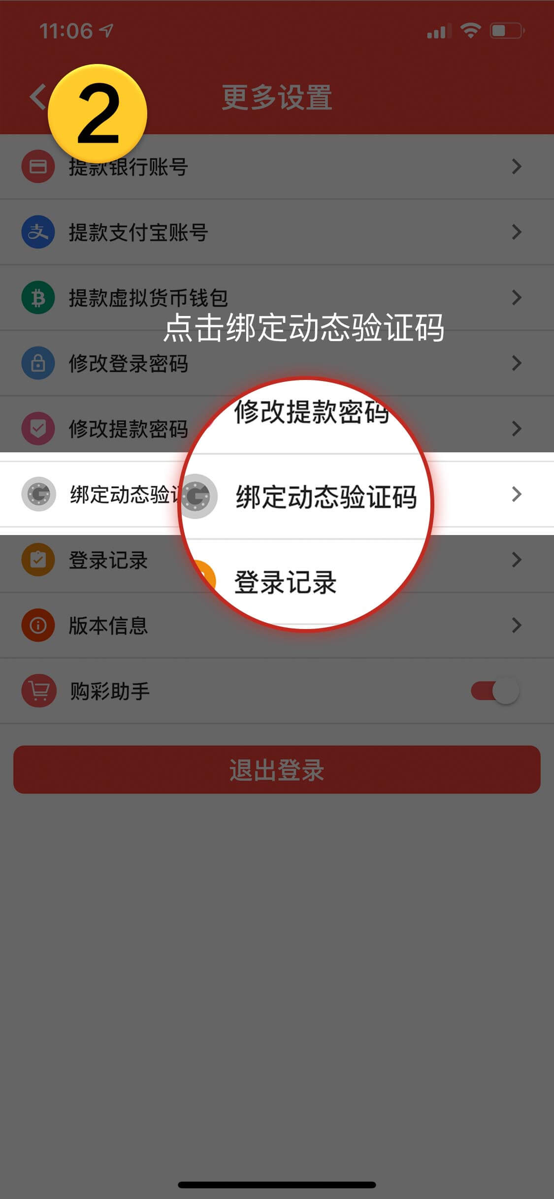 1、登录APP进入我的--更多设置--绑定动态验证码。
