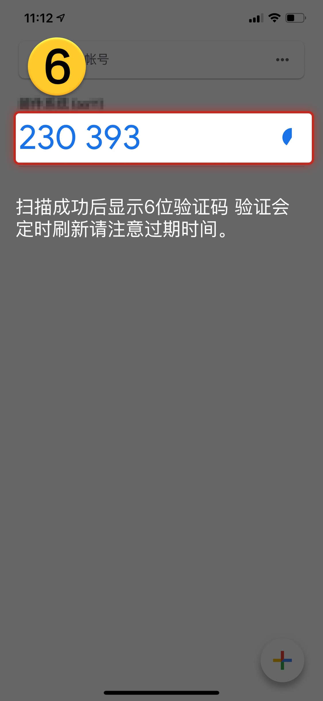 4、绑定完成谷歌验证器APP将生成一串6位数字的验证码。